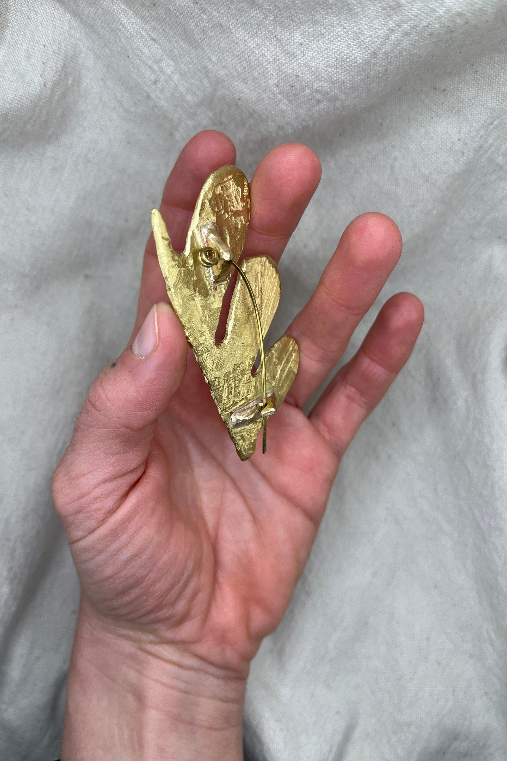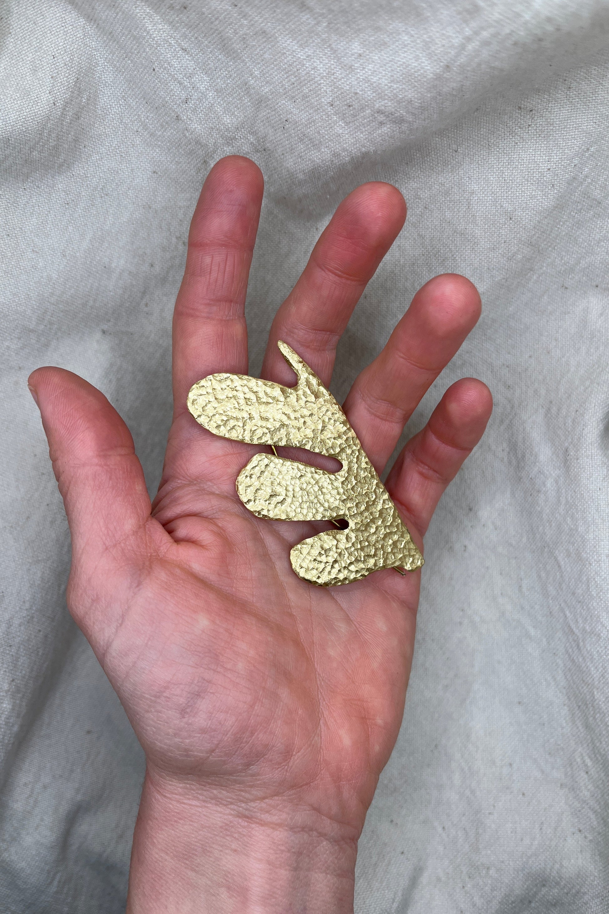 care: even varnished brass can slightly tarnish over time. Avoid contact with perfume or water, and be sure to store the brooch in its pouch