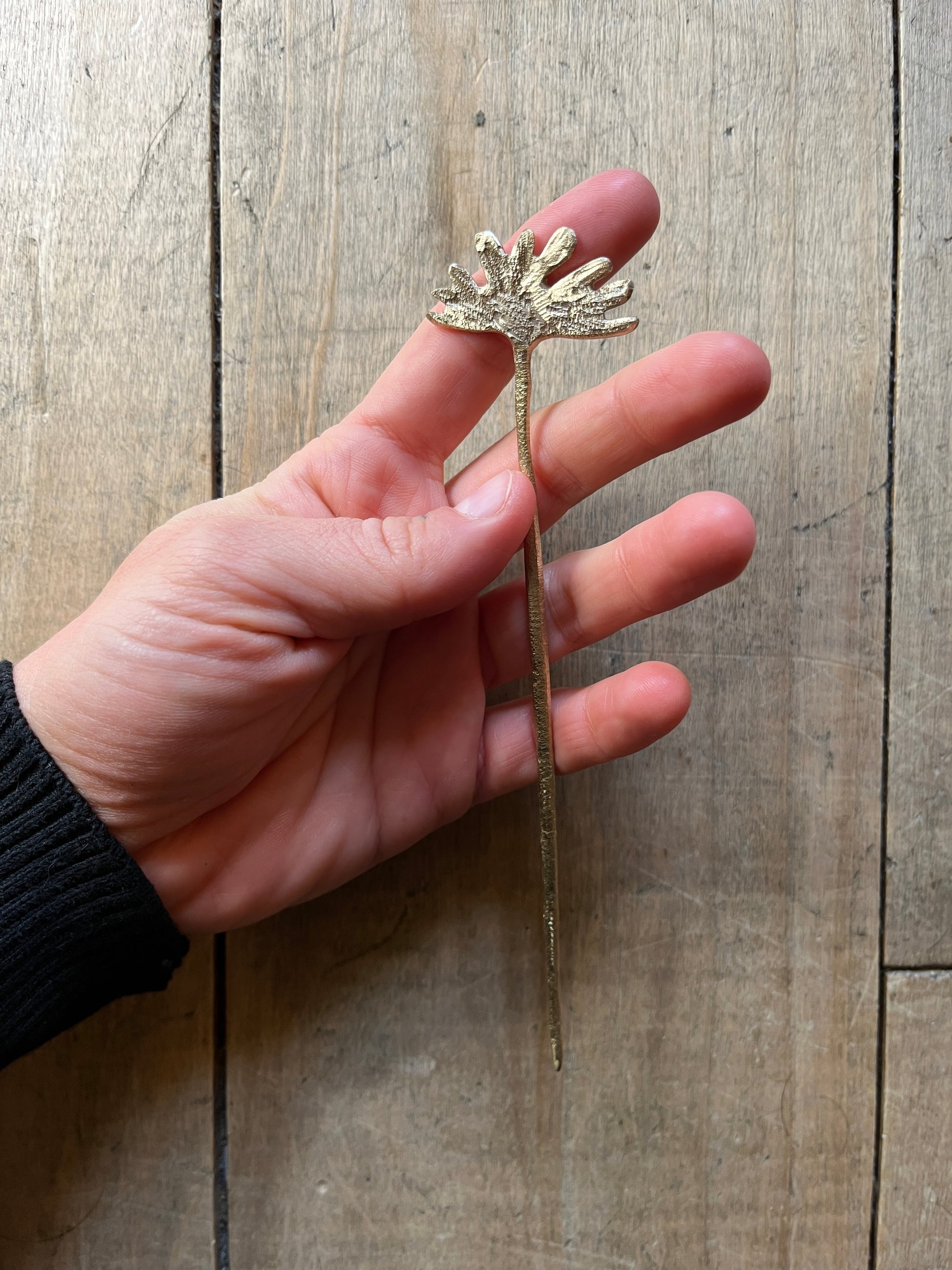 chaque pièce, produite en petite série à l'atelier, est unique : les nuances et variations sur chacun des pics à cheveux reflètent les gestes qui les rendent singulières et vivantes