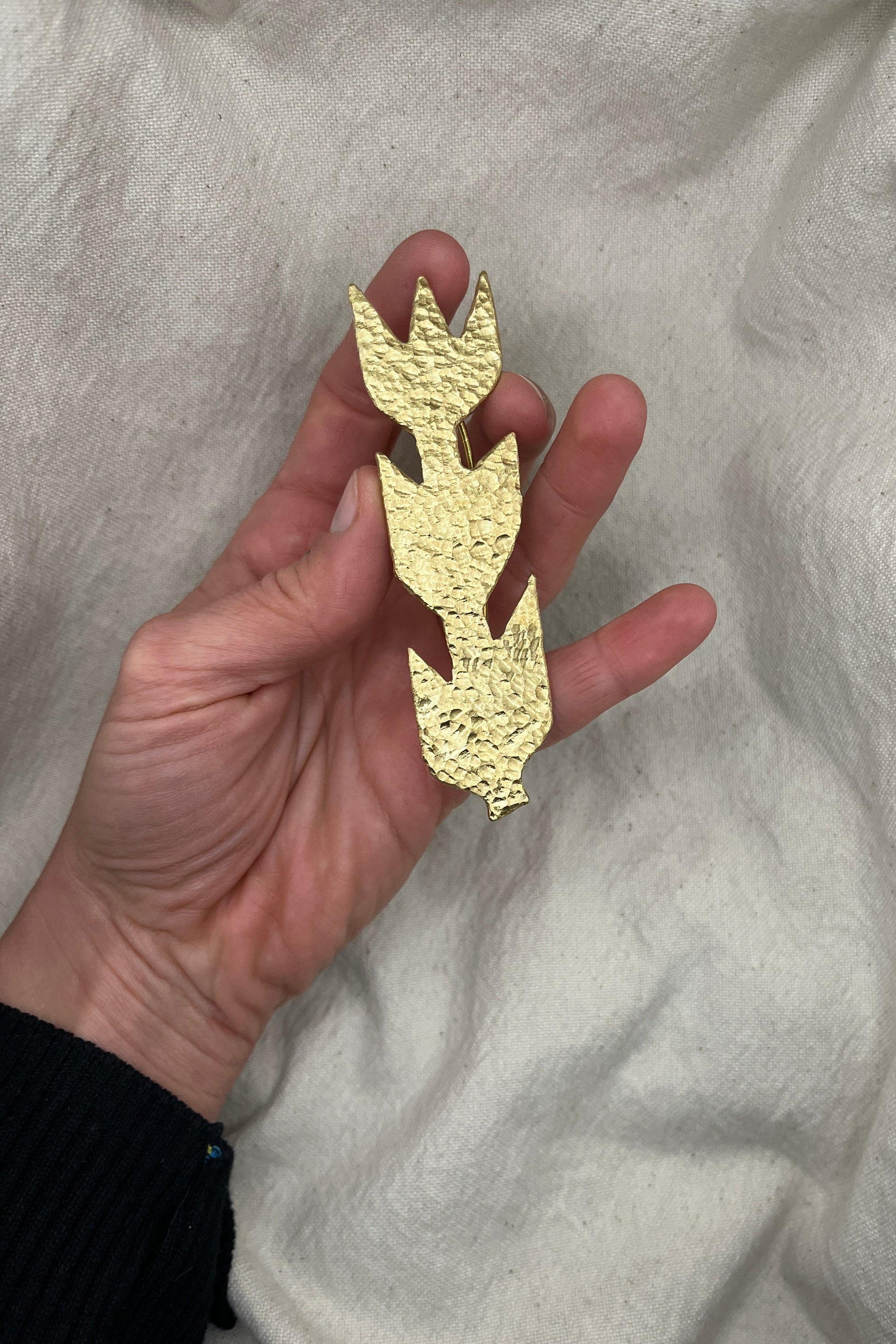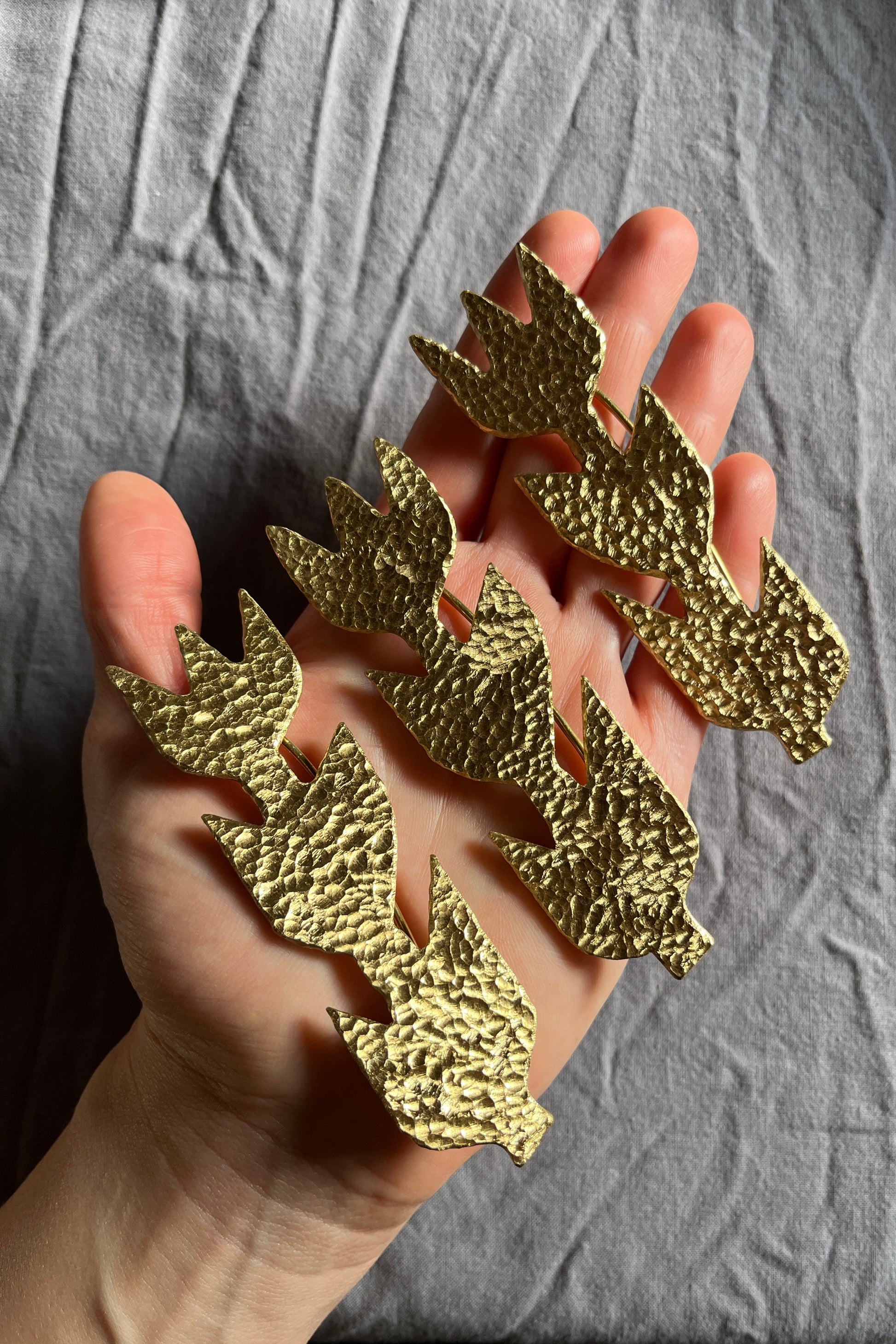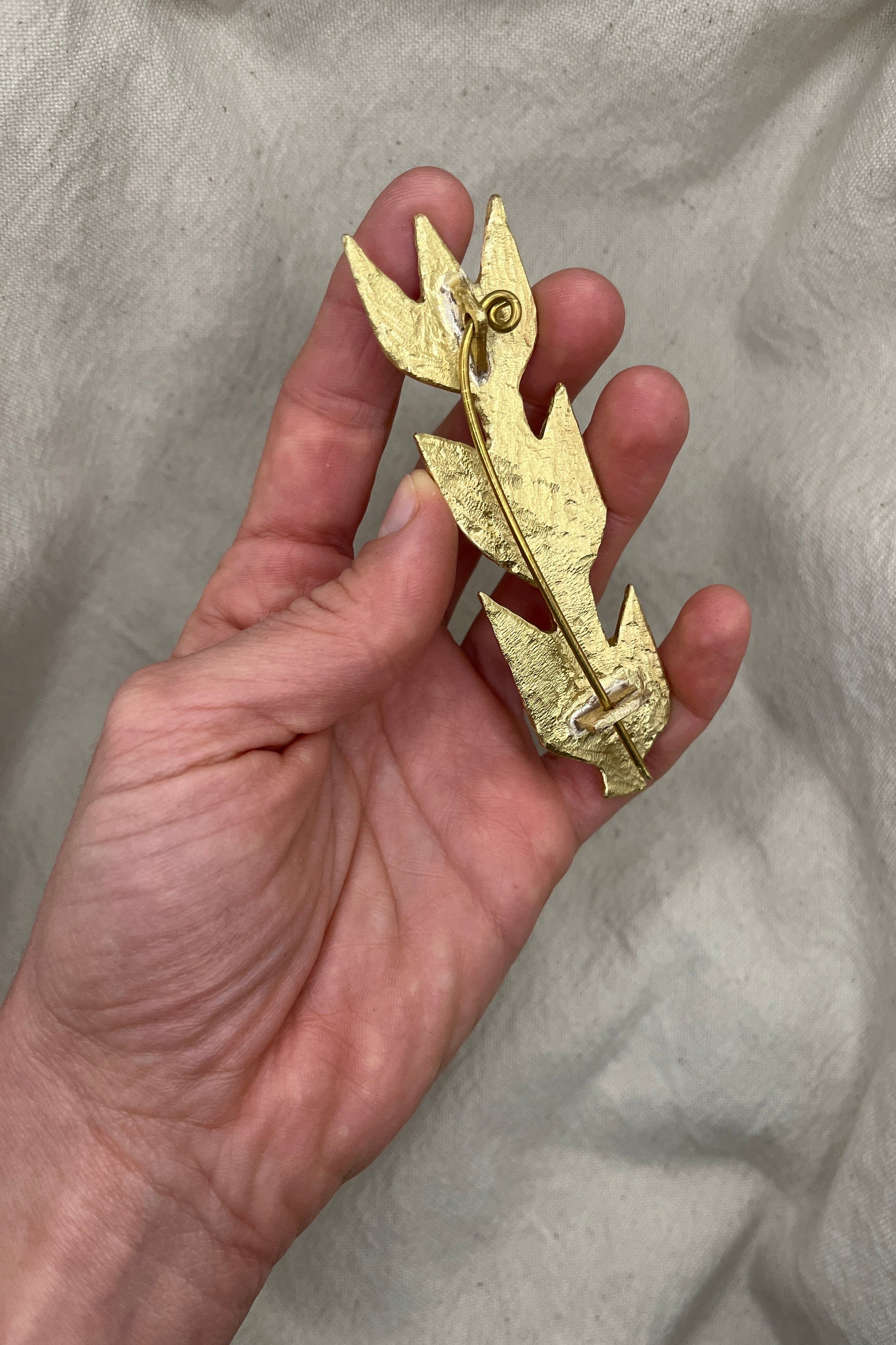 care: even varnished brass can slightly tarnish over time. Avoid contact with perfume or water, and be sure to store the brooch in its pouch